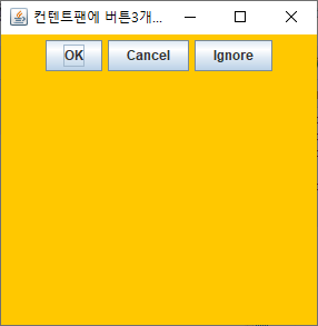 setTitle("컨텐트팬에 버튼3개만들기"); // 프레임 타이틀 달기