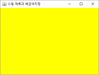 1. 아래 그림과 같은 스위 프로그램을 작성하시오.( 크기는 400 * 300, 배경색은 노랑색 )