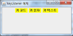 // la에 입력된 키의 키 이름 문자열을 출력하여 사용자에게 보고함 la.setText(KeyEvent.getKeyText(e.getKeyCode())+"키가 입력되었음");