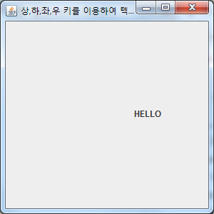키보드의 방향키를 눌려 "Hello" 문자열을 움직여보자. ( 실행시 x좌표 50, y좌표 50을 초기값으로 설정 )