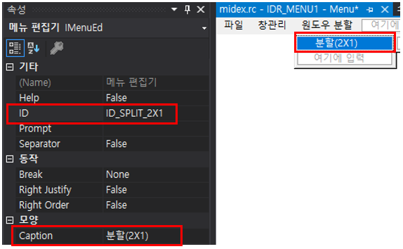 switch (iMsg) { case WM_CREATE: split = FALSE; return 0; case WM_COMMAND: switch (LOWORD(wParam)) { case ID_SPLIT_2X1: .... return 0; case WM_MOUSEMOVE: if (HIWORD(lParam) >= boundary - 2 && HIWORD(lParam) <= boundary + 2) if (wParam == MK_LBUTTON && split == TRUE) { GetClientRect(hwnd, &rectView); if (rectView.top + 5 < HIWORD(lParam) && HIWORD(lParam) < rectView.bottom - 5) MoveWindow(ChildHwnd[0], 0, 0, rectView.right, boundary - 1, TRUE); MoveWindow(ChildHwnd[1], 0, boundary + 1, rectView.right, rectView.bottom - boundary + 1, TRUE); } return 0; case WM_LBUTTONDOWN: if (split == TRUE) { SetCursor(hCursor); SetCapture(hwnd); // 마우스를 윈도우 내에 캡처하기 } return 0; case WM_LBUTTONUP: if (split == TRUE) return 0; case WM_DESTROY: PostQuitMessage(0); return 0; } return DefFrameProc(hwnd, hwndClient, iMsg, wParam, lParam); }