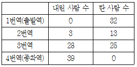 (2) 출발역에서 내린 사람 수와 종착역에서 탄 사람 수는 0이다.
