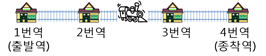 최근에 개발된 지능형 기차가 1번역(출발역)부터 4번역(종착역)까지 4개의 정차역이 있는 노선에서 운행되고 있다.