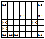 가장 왼쪽 아래의 좌석번호는 (1,1)이며, 가장 오른쪽 위 좌석의 번호는 (7,6) 이다.