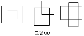 먼저 두 직사각형의 겹치는 부분이 직사각형인 경우이다. 아래 그림(a)는 공통부분이 직사각형인 경우의 3가지 예를 보여준다,