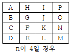 문자의 진행 순서는 왼쪽 위에서부터 아래쪽으로 ‘A'부터 차례대로 채워나가고