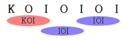 주어진 문자열에서 연속 3개의 문자가 IOI 이거나 KOI인 문자열이 각각 몇 개 있는지 찾는 프로그램을 작성하라.