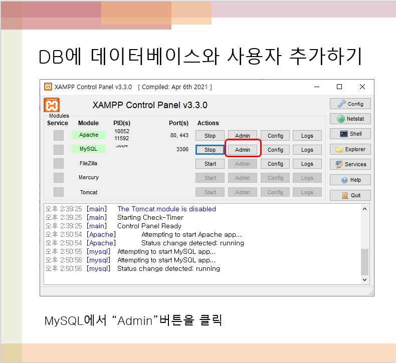 | MySql Workbench에 DB생성, 사용자생성하고 연동 (0) | 2022.02.21 |