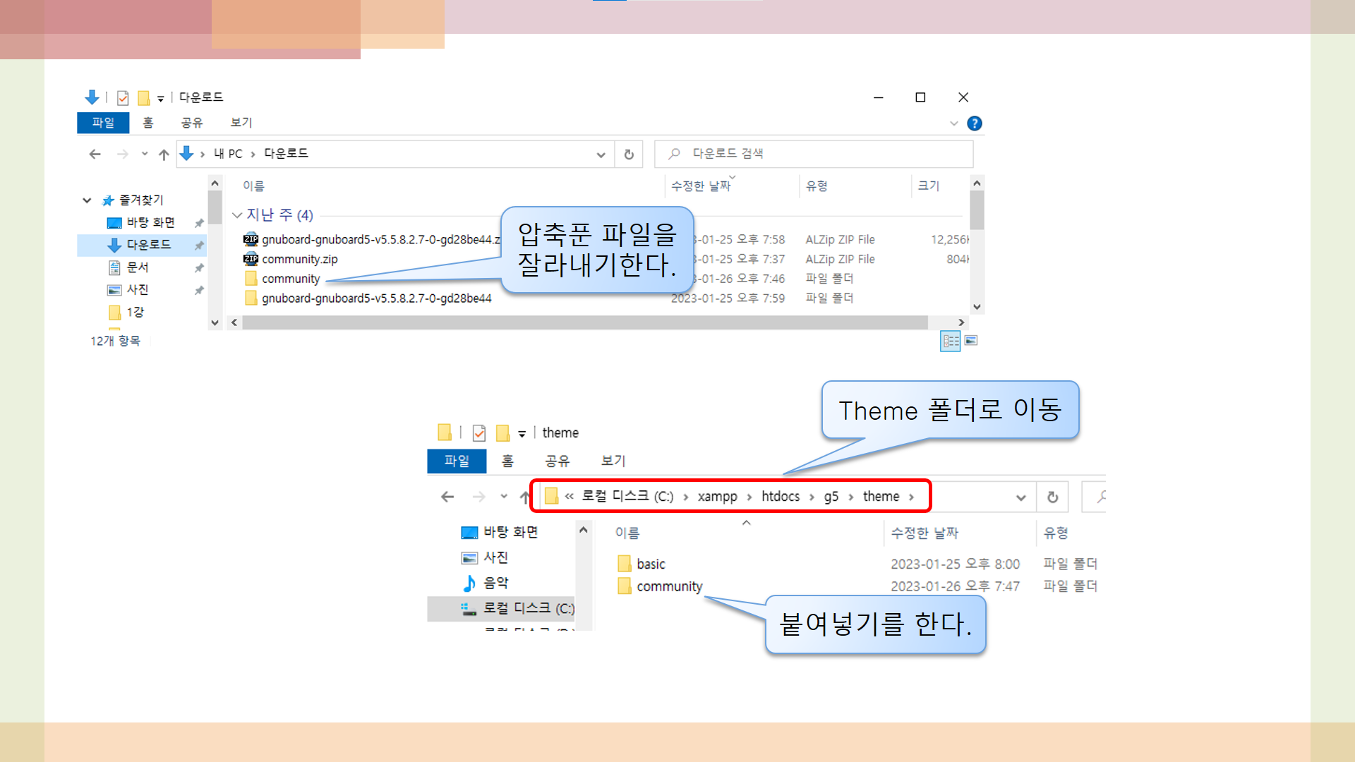 theme 폴더에 압축푼 파일을 이동 시킨다.