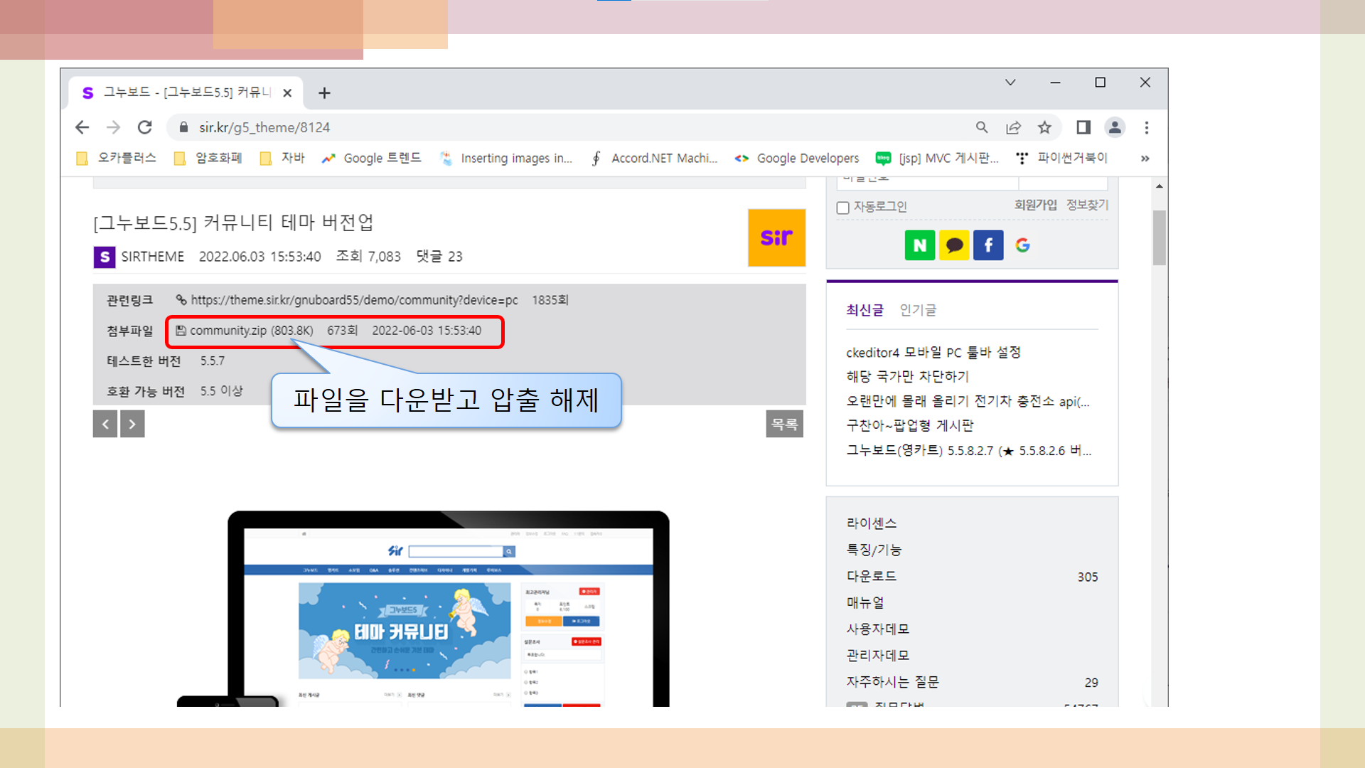 theme 폴더에 압축푼 파일을 이동 시킨다.