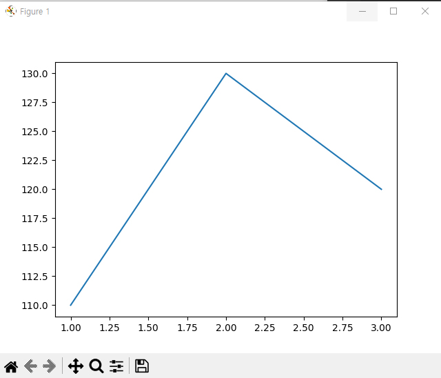 >>> plt.plot([1,2,3], [110, 130, 120])