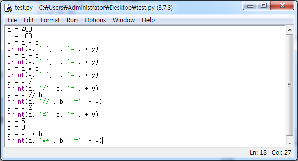 이번에는 빼기, 곱하기, 나누기, 몫, 나머지, 제곱을 계산한 후 출력해 보겠습니다.