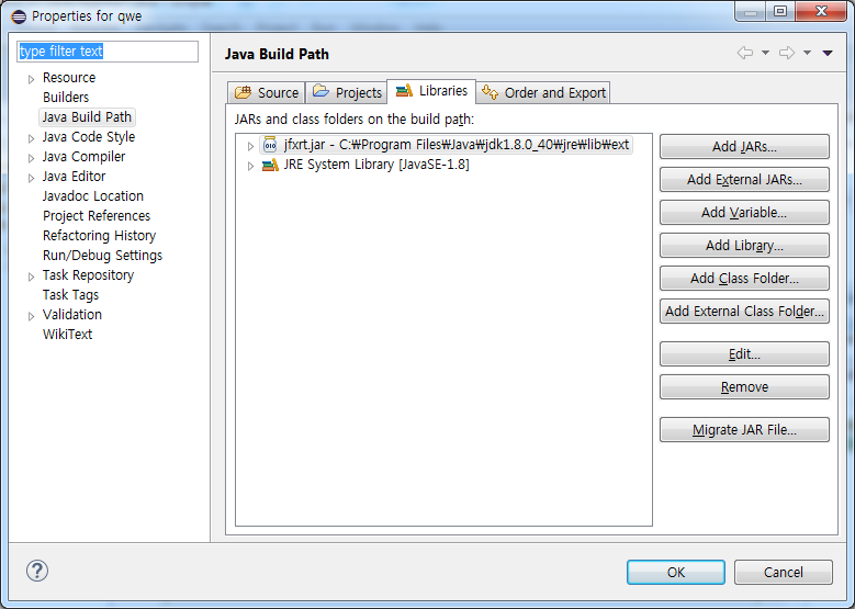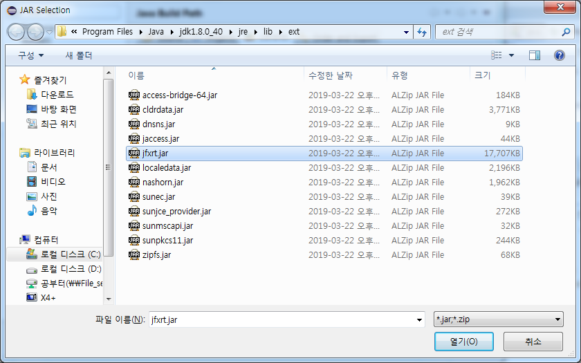 디렉토리 안에서 jfxrt.jar를 선택하고 열기버튼 클릭