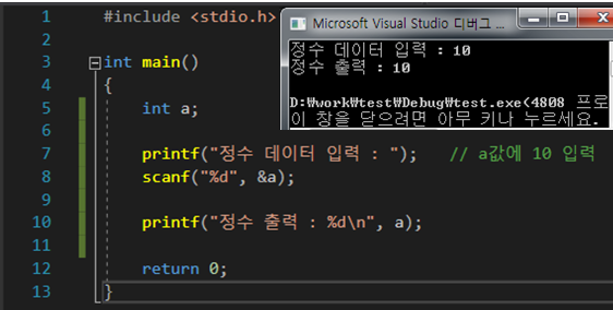 scanf() 함수는 키보드로부터 값을 입력받을 때 사용하는 함수입니다.