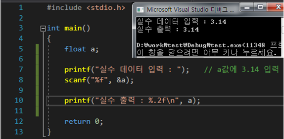 | %f | 고정 소숫점으로 입력( float형 ) |