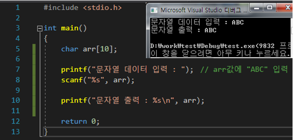 입력 데이터가 문자열 일 때 변수 앞에 &를 붙이지 않는다.