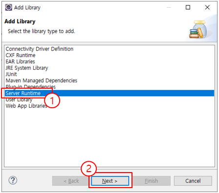 3. 대화상자에서 [Server Runtime] - [Next] 버튼을 클릭
