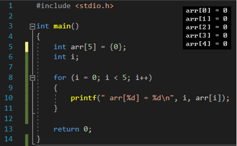 int arr[5]={0}; { |