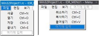 앞예제에서 사용한 메뉴에 단축기 쓰기